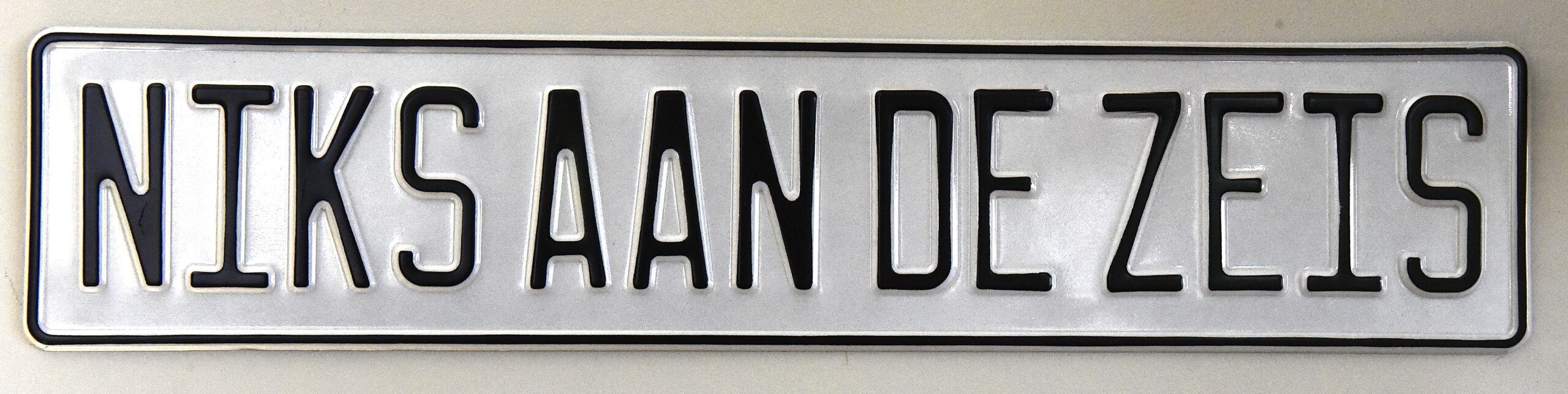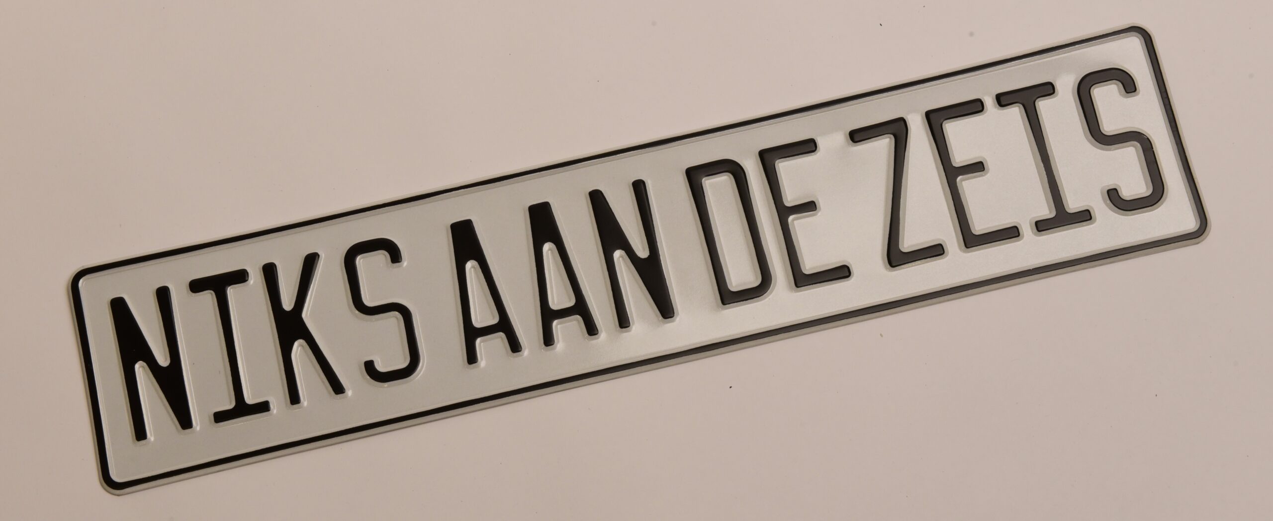 Geef je trekker, schuur of mancave de uitstraling die het verdient met deze officiële Niks aan de zeis kentekenplaat!
